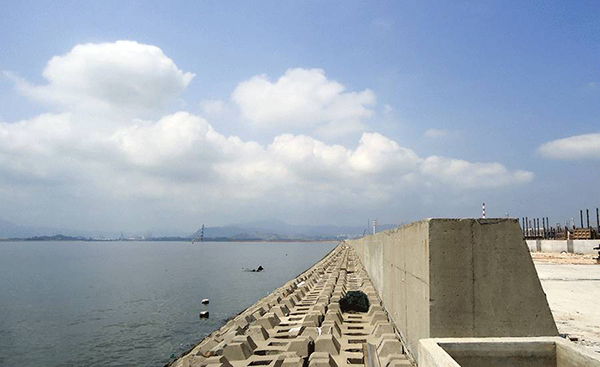 該段海堤長約781.1米,堤頂高程4.0米,設有防浪墻高程5.5米,斜坡坡度為1:1.5,于2011年完工驗收投入使用。