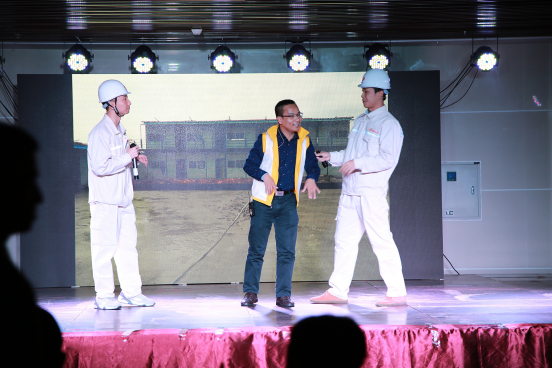 精彩的問答環(huán)節(jié)結束后,伴隨著歡快而富有節(jié)奏的鑼鼓聲,三句半《石化發(fā)展集團譜新篇》開始了。在詼諧風趣的你一言我一語中,表達了對公司的熱愛和未來的憧憬!