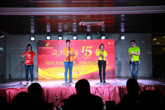 2016年12月25日,在石化發(fā)展集團成立15周年這個喜慶的日子,石化發(fā)展集團組織舉辦了以“櫛風沐雨結碩果 砥礪前行續(xù)新篇”為主題的慶祝活動?;顒拥墓?jié)目均由石化發(fā)展集團系統(tǒng)員工自編自演,形式多樣并且貼合工作實際,石化發(fā)展集團、環(huán)保發(fā)展公司、基建公司、實業(yè)公司全體人員,以及石化投資公司、應急管理公司共同為石化區(qū)開發(fā)建設管理揮灑汗水的嘉賓和同仁參加活動,歡聚一堂共同慶賀石化發(fā)展集團成立15周年!