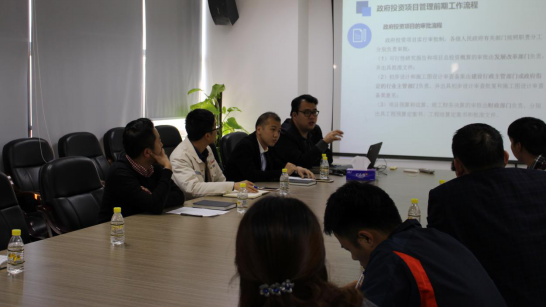 紫金城投公司表示對石化區(qū)PPP項目運營管理實務(wù)經(jīng)驗非常感興趣,為此,基建公司投資發(fā)展部就石化區(qū)PPP項目實務(wù)案例——大亞灣石化區(qū)J1地塊三期用地軟基處理工程,從項目發(fā)起、項目準(zhǔn)備、方案編制、項目采購、項目執(zhí)行等方面作了全面而完整的介紹。紫金城投一行紛紛表示PPP項目前景可觀,希望能將此次學(xué)習(xí)經(jīng)驗帶回紫金付諸于工程實踐中去。
