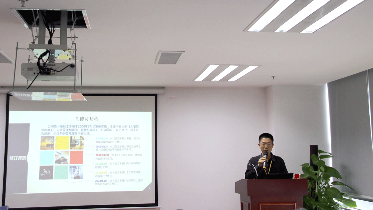 隨后,集團(tuán)人力資源部/黨委辦副主任江東勝同志對(duì)剛剛修訂印發(fā)的《員工手冊(cè)》進(jìn)行了宣講解讀,他從修訂說(shuō)明、章節(jié)概述、要點(diǎn)講解等方面對(duì)該《員工手冊(cè)》作了全面細(xì)致的講解,并就公司核心價(jià)值觀、員工薪酬福利、紀(jì)律處分條例等與員工息息相關(guān)的內(nèi)容進(jìn)行了重點(diǎn)解讀,進(jìn)一步加強(qiáng)了廣大員工對(duì)新版《員工手冊(cè)》的全面了解。李仕國(guó)同志在主持過(guò)程中特別強(qiáng)調(diào)了集團(tuán)新版《員工手冊(cè)》的正式印發(fā)實(shí)施對(duì)規(guī)范員工管理的重要意義,希望廣大員工進(jìn)行認(rèn)真深入地閱讀了解,真正將該《員工手冊(cè)》作為全體員工日常工作行為規(guī)范的基本遵循,展現(xiàn)出更加積極向上、作風(fēng)優(yōu)良的工作狀態(tài)和精神風(fēng)貌。