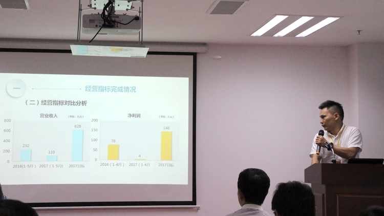 實(shí)業(yè)公司曾慶超總經(jīng)理在介紹實(shí)業(yè)公司上半年的經(jīng)營(yíng)發(fā)展現(xiàn)狀