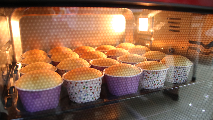 一個(gè)個(gè)金黃色的紙杯蛋糕外焦內(nèi)嫩,