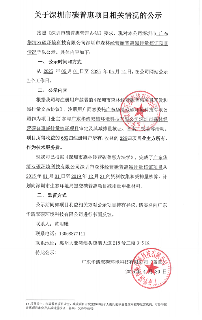 關(guān)于深圳市碳普惠項(xiàng)目相關(guān)情況的公示
